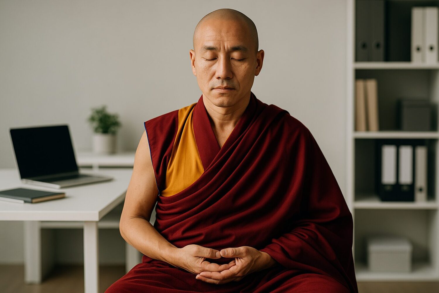 Wichtig: Nicht laissez-faire, sondern bewusste, gelebte Gelassenheit. Und die ist weder faul noch passiv, sie ist aktiv und mutig. Wie ein buddhistischer Mönch, der frühmorgens still im Tempelgarten sitzt, während um ihn herum die Glocken läuten, Vögel zwitschern und der Tag langsam erwacht, und doch bleibt er bei sich, im Moment, ohne Eile, ohne Ablenkung.