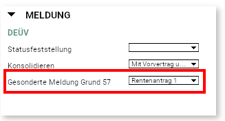 Erfahren Sie hier, wie Sie mittels der Maske "Sozialversicherung" die "gesonderte Meldung 57" erfassen können. Beispielsweise für die Rentenversicherung oder das Familiengericht im Falle einer Scheidung.